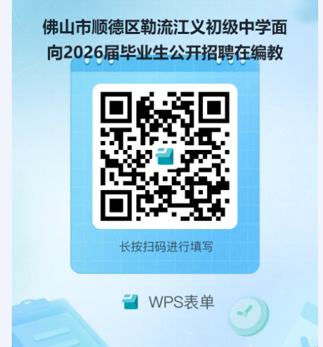 佛山市顺德勒流江义初级中学面向2026届毕业生公开招聘在编教师公告