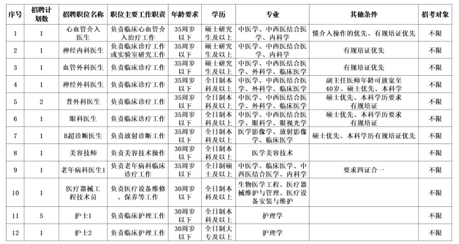 备注:本次招聘我院将按照招聘情况分期分批组织实施招聘工作,直至岗位招聘完成