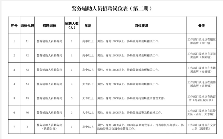 附件:1.警务辅助人员招聘岗位表(第二期)
