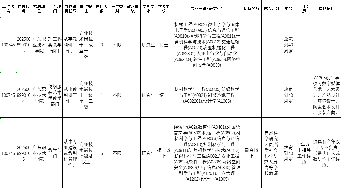 根据《广东省事业单位2025年集中公开招聘高层次和急需紧缺人才公告》及有关工作安排,本次招聘未招满的岗位,后续将滚动招聘。欢迎符合招聘条件的人才报考我校(归属考区:省直,单位代码:100745,岗位代码:2025008990103-2025008990105)。现就第三轮招聘有关事项公告如下: