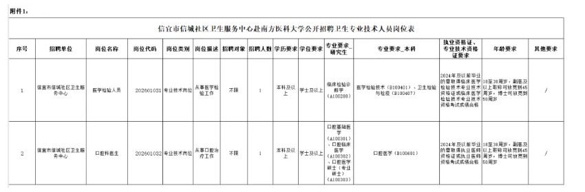 招聘岗位详见《信宜市信城社区卫生服务中心赴南方医科大学公开招聘卫生专业技术人员岗位表》