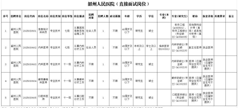 (一)请应聘人员密切关注韶关市人力资源和社会保障局(https://rsj.sg.gov.cn/)、韶关市