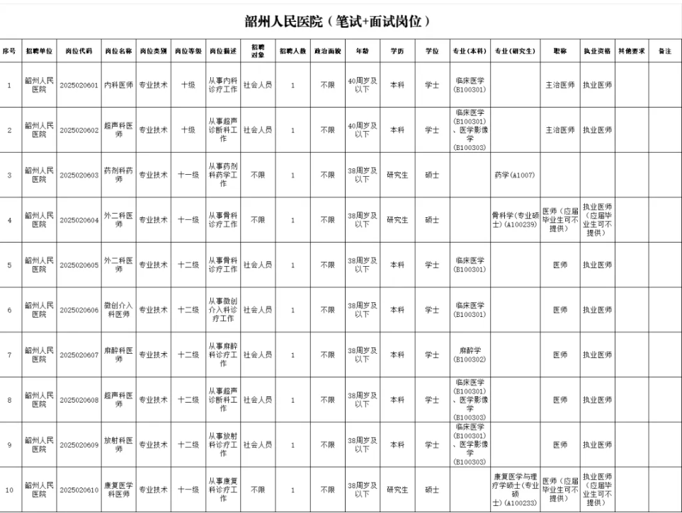 2.报名要求:应聘人员登录韶关市卫生健康局直属事业单位“百万英才汇南粤”2025年秋季公开招聘报名系统进行报名(网址:https://www.sydwzk.cn/gdsgwjjqjzp2025)。应聘人员应仔细阅读招聘条件,按要求填写本人的报名信息,并通过报名系统上传以下报名材料:有效期内身份证,毕业证、学位证〔2026届普通高校毕业生(非在职)提供《就业推荐表》和教育部学籍在线验证报告等〕,相关岗位要求的专业技术资格证、医师资格证、医师(护士)执业证等证件原件的电子版;港澳学习、国外留学人员须提供教育部中国留学服务中心境外学历、学位认证函等有关证明材料的电子版;应聘人员为国家机关、国有企事业单位在编人员的,在报名时须提交工作单位和主管部门同意报考的书面证明电子版。