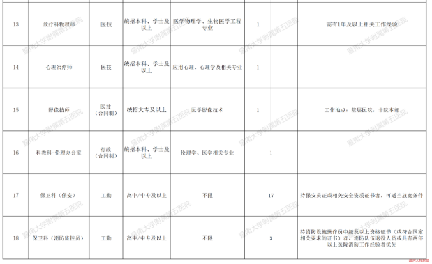 招聘若干人17个岗位