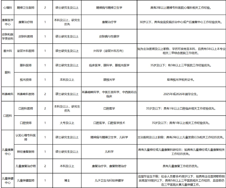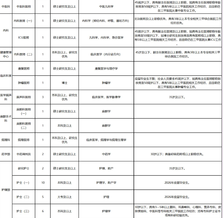 2.医师类岗位须完成规培,取得与应聘岗位专业相符的执业医师资格。