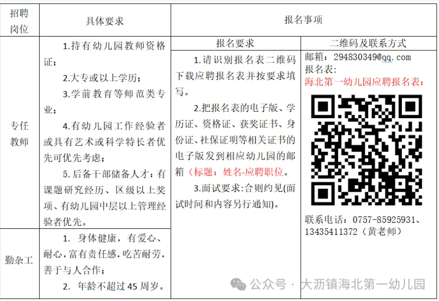 1.入职即购五险一金,工资待遇、聘任期限等按照大沥镇教育发展中心公办幼儿园标准执行。