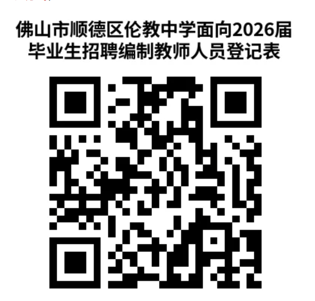 有意报名者必须扫码填报个人信息(本链接仅作为顺德区伦教中学面向2026届毕业生招聘意向人员信息登记方式)。