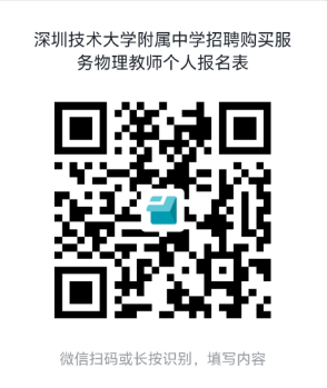应聘人员请于2026年1月12日17:00前将个人简历、学历学位证书、教师资格证书、荣誉证书等材料整合成一个PDF文件发送至我校邮箱sjdfz@139.com,邮箱标题及文件命名格式统一为应聘+学科+姓名,并扫描下方二维码同步填写报名信息: