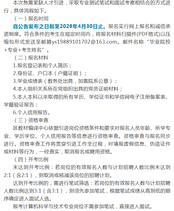 为深入实施人才强区战略,吸引更多人才进藏建藏,进一步推动教材编译工作提质增效,为服务西藏教育高质量发展奠定坚实基础,根据《西藏自治区高层次和急需紧缺人才引进办法》等相关规定,现将2026年西藏自治区教材编译中心(以下简称区教材编译中心)急需紧缺人才引进公告如下。