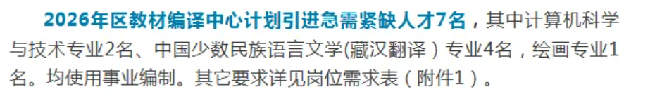 西藏自治区教材编译中心2026年度急需紧缺人才引进7人公告