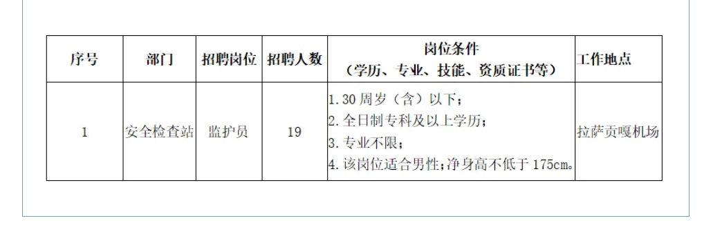 (五)身心健康,无纹身,适应高原工作环境。