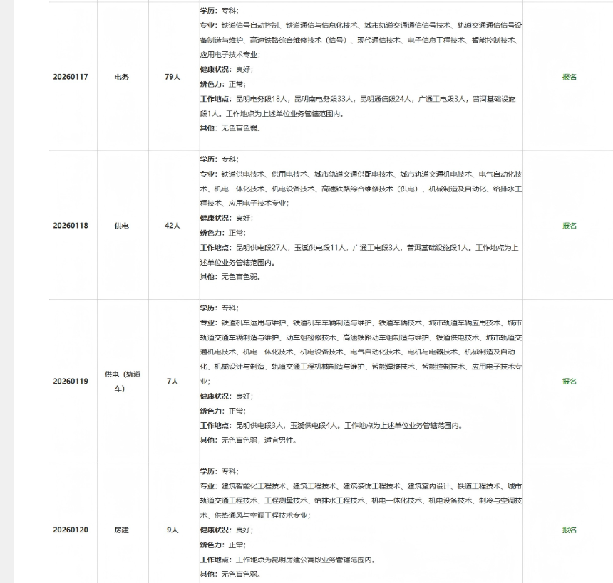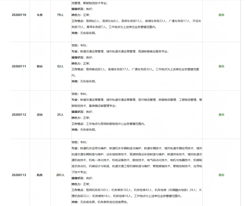 5.素质能力适应招聘岗位工作要求,服从企业对岗位、工作地点的安排和调整,20260203-20260206岗位新录用毕业生安排在中国铁路昆明局集团有限公司所属单位操作技能岗位。