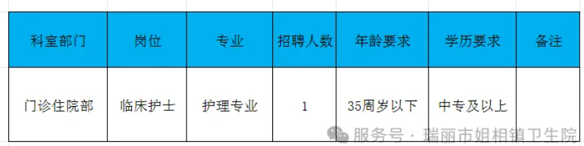 瑞丽市姐相镇卫生院人才招聘公告