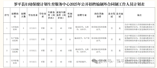 2.报名须提供材料:《罗平县妇幼保健院2025年公开招聘编外人员报名表》;有效身份证原件及复印件;《毕业证》原件及复印件;医师资格证原件及复印件;医师执业证原件及复印件。
