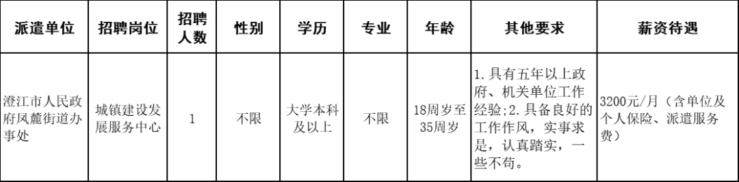 澄江市人民政府凤麓街道办事处因工作需要,委托澄江市启澄人力资源有限责任公司,面向社会公开招聘行政辅助工作人员1名,现将有关事项公告如下: