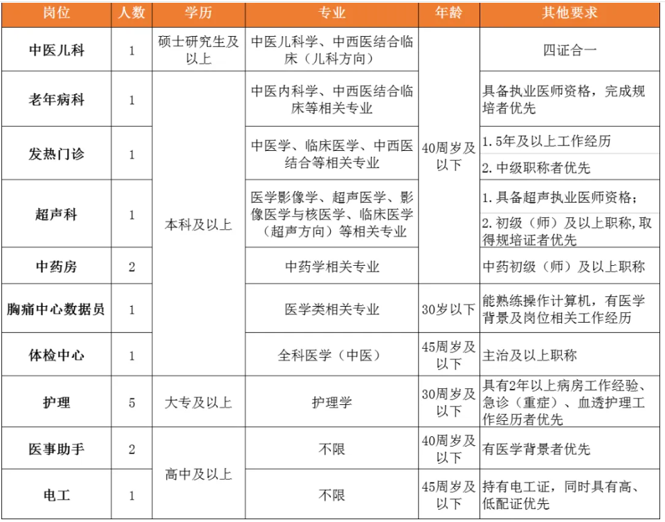 根据医院发展和科室建设需求,义乌市中医医院拟面向社会招聘以下岗位人员: