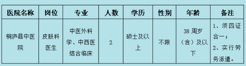 桐庐县中医院医共体公开招聘皮肤科高层次人才公告