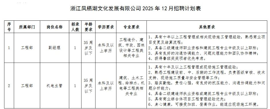 本次招聘相关事宜由凤栖湖公司负责解释。