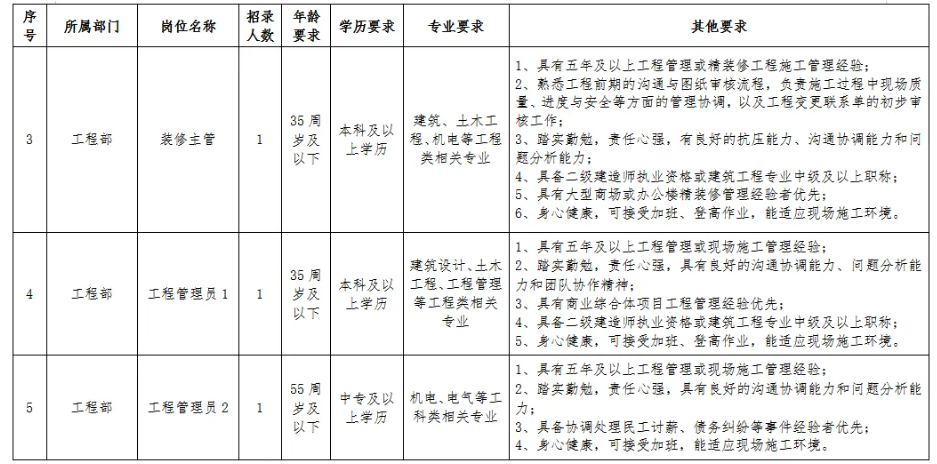 招聘岗位具体要求