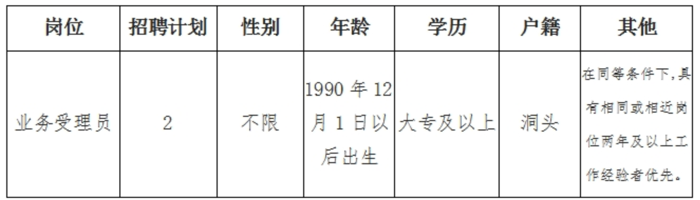 温州市洞头人才发展有限公司招聘启事(业务受理员)
