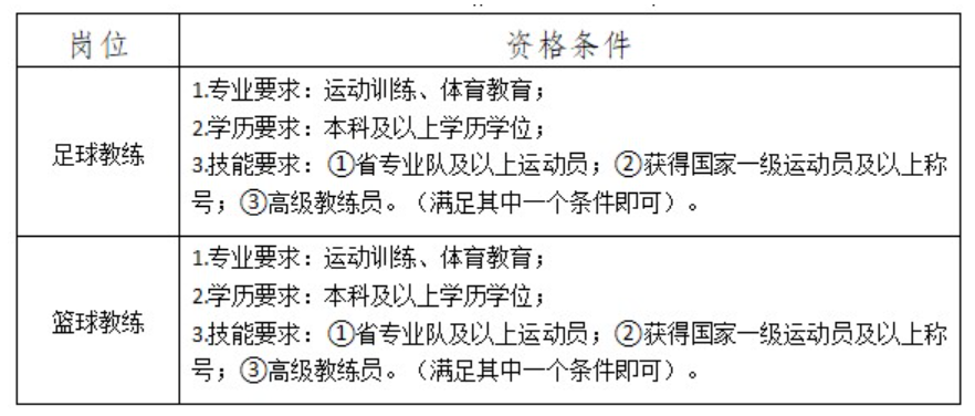 3.报考体育教练(足球、篮球)岗位,且以高水平运动员录取普通高校的人员(需提供相应证明材料),专业不限。