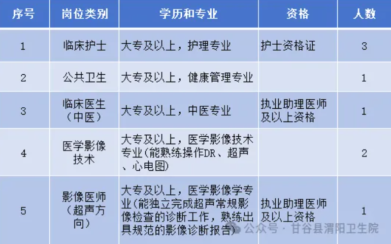 2.如遇突发情况,因个人原因未参加招聘各程序的,视为自动放弃。3.临床医生(中医)、影像医师(超声方向)、影像技师有执业资格证的人员,直接进入面试,不再笔试。4.临床医生(中医)、影像医师(超声方向)采取“一人一策”、“一事一议”,最终确定引进意见及薪酬待遇。5.临床医生(中医)、影像医师(超声方向)岗位招聘自公告发布之日起,有效期1年,招满为止。6.公告未尽事宜,由新兴镇中心卫生院渭阳分院负责解释。
