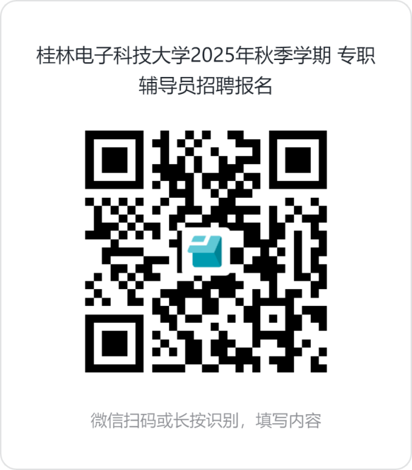应聘人员按要求填写《桂林电子科技大学专职辅导员招聘报名登记表》(附件1)《桂林电子科技大学专职辅导员报名材料收集表》(附件2),并点击链接(https://f.wps.cn/g/MQQOiqKB/)或扫描下方二维码登记报名。