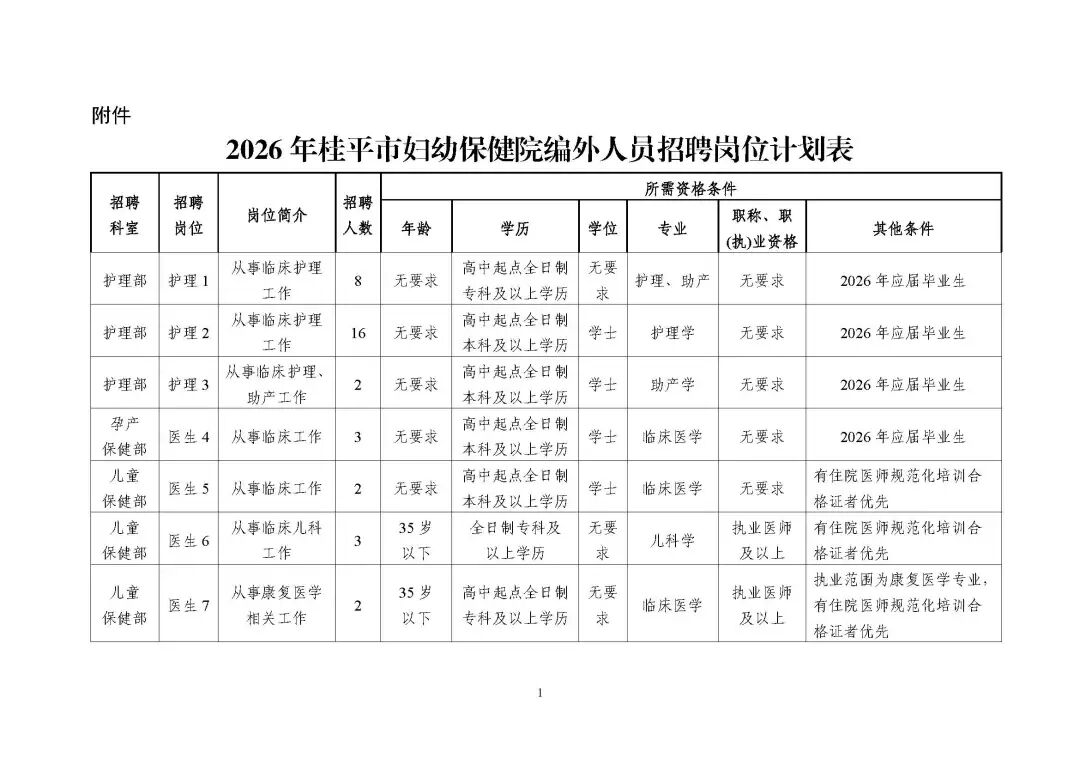 详见《桂平市妇幼保健院公开招聘编外工作人员计划表》(附件)。
