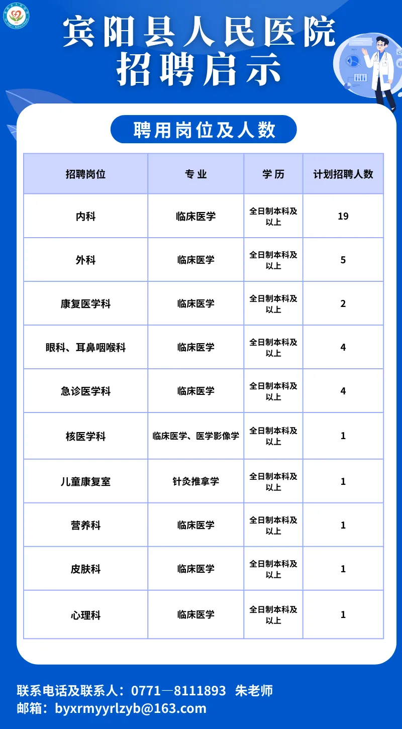 地址:宾阳县宾州镇新宾仁爱街137号宾阳县人民医院人力资源部