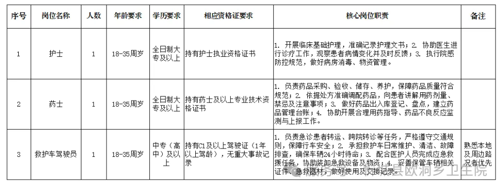 因业务发展需要,向社会公开招聘编外3名工作人员(1名护士、1名药士、1名救护车驾驶员),现将有关事项公告如下: