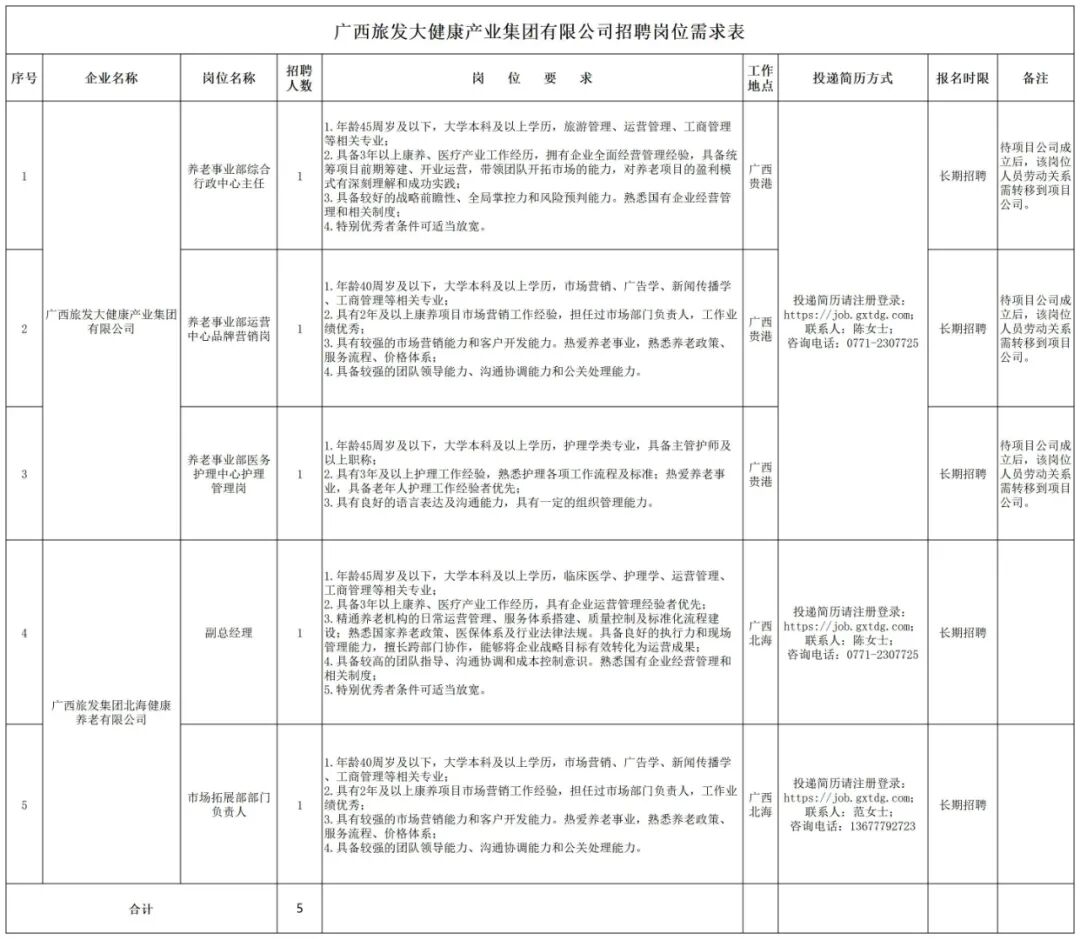 广西旅发大健康产业集团有限公司有关岗位员工5名。
