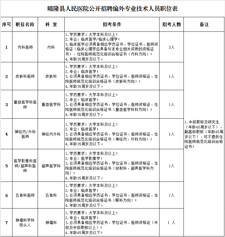 晴隆县人民医院公开招聘编外专业技术人员职位表
