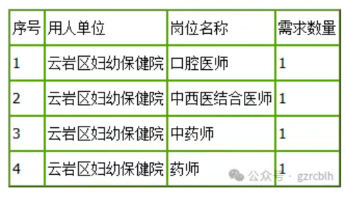 此次计划公开招聘编外聘用专业技术人员均为劳务派遣形式,具体招聘岗位及要求详见《云岩区妇幼保健院面向社会公开招聘编外聘用专业技术人员岗位一览表》。