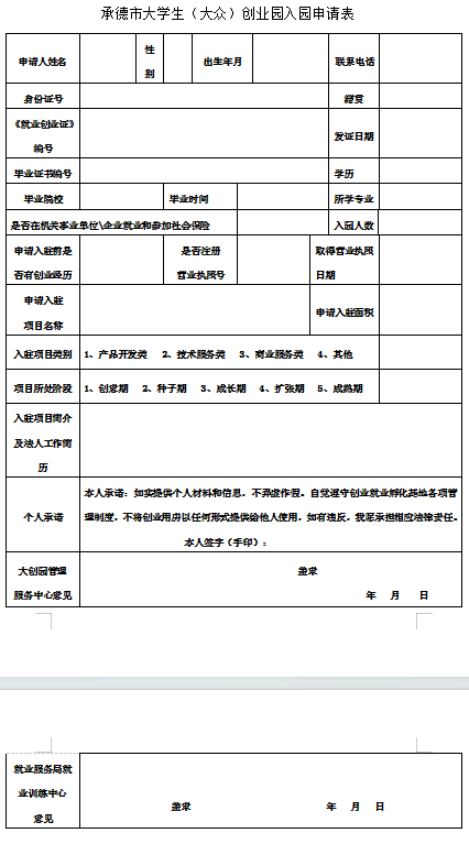 1、入驻申请表,可当面填写申报或网上申报。