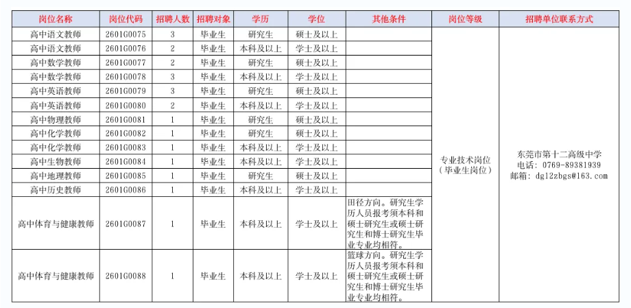 为深入贯彻落实广东省高质量发展大会精神和“百万英才汇南粤”行动计划,围绕“粤聚英才·粤见未来”主题,东莞市教育局2026年上半年将继续开展校园招聘系列活动,其中2026年1月设点广州面向全国优秀毕业生公开招聘事业编制教师,我校本次在广州专场中,共计招聘事业编制教师23名。