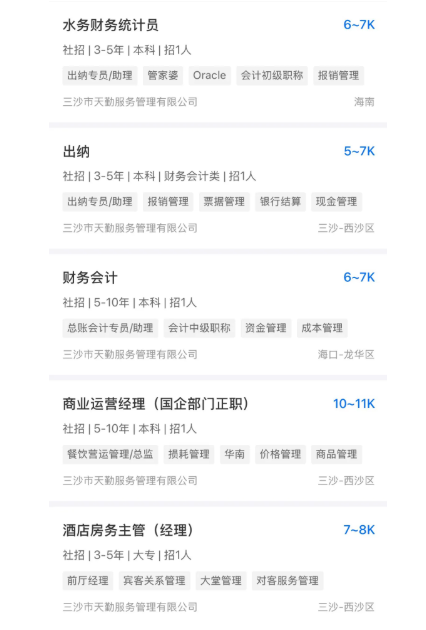 三沙市天勤服务管理有限公司招聘