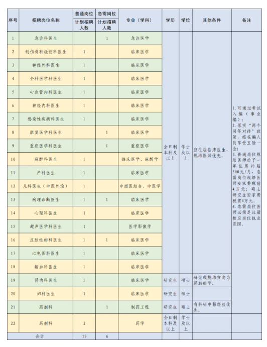 2.具有规培合格证的医生依照国卫办科教发〔2021〕18号文件,落实“两个同等对待”政策,即“面向社会招收的普通高校应届毕业生培训对象培训合格当年在医疗卫生机构就业的,在招聘、派遣、落户等方面,按当年应届毕业生同等对待。对经住培合格的本科学历临床医师,在人员招聘、职称晋升、岗位聘用、薪酬待遇等方面,与临床医学、中医专业学位硕士研究生同等对待”。普通岗位规培医师给予一年住房补贴500元/月,急需岗位规培医师安家费税前4万元,急需岗位医师必须注册相应岗位执业范围。