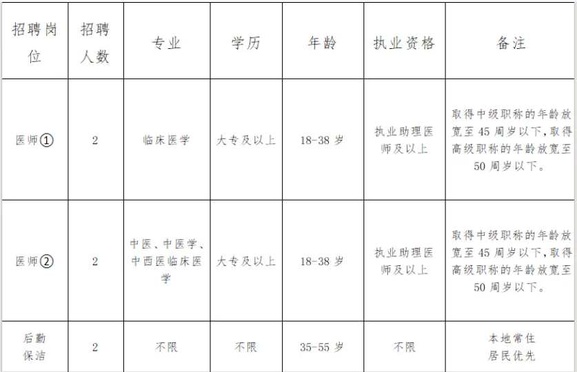 遵纪守法,品行端正,热爱医疗卫生事业,具备良好的职业道德和团队协作精神,身体健康,能胜任岗位。