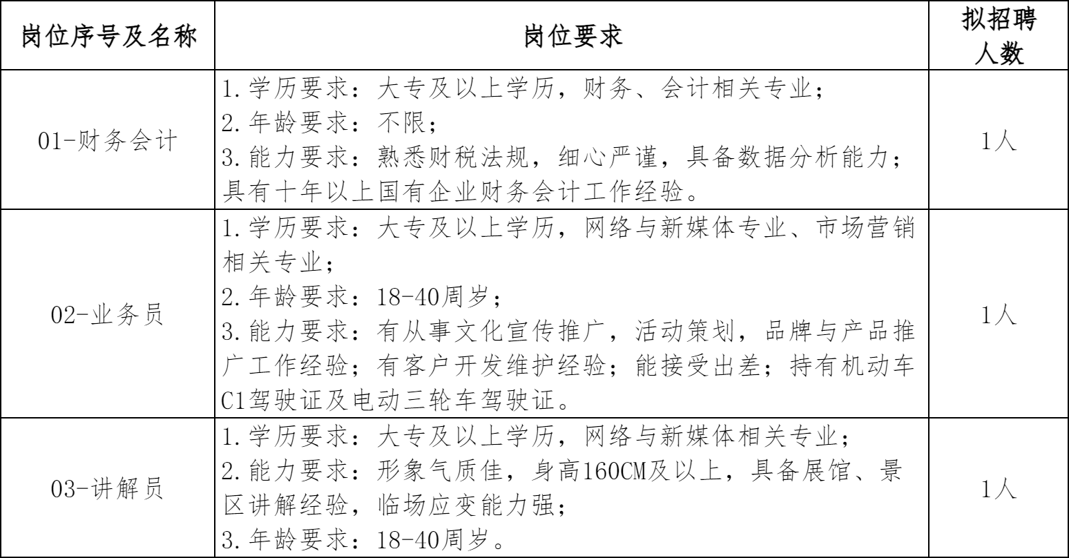 详见附件1《2026年井冈山垦殖场农产品开发有限责任公司招聘岗位及任职要求》。本次招考年龄计算方法为:18周岁及以上是指2008年1月1日(含)以后出生;40周岁及以下是指1986年1月1日(含)以后出生。招聘岗位要求的资格证书获取的时间截至2026年1月1日(含)。
