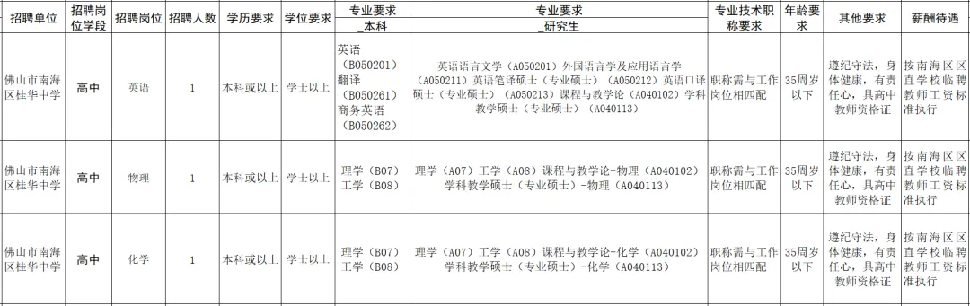 享受南海区高中临聘教师待遇。