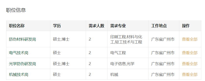 1.防伪材料研发岗2人,材料、化工、轻工、印刷类相关专业。