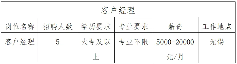 因发展需要,浦发银行无锡分行信用卡部招聘客户经理5名。