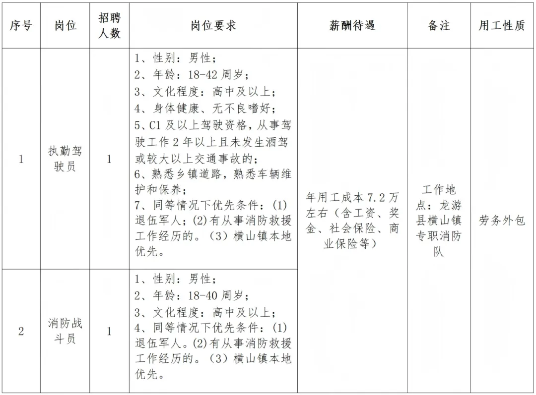 龙游县横山镇人民政府招聘执勤驾驶员、消防战斗员岗位公告