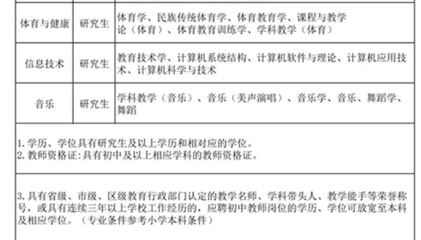 4.应聘初中教师岗位的须具备初中及以上相应学科教师资格证,应聘小学教师岗位的须具备小学及以上相应学科教师资格证。