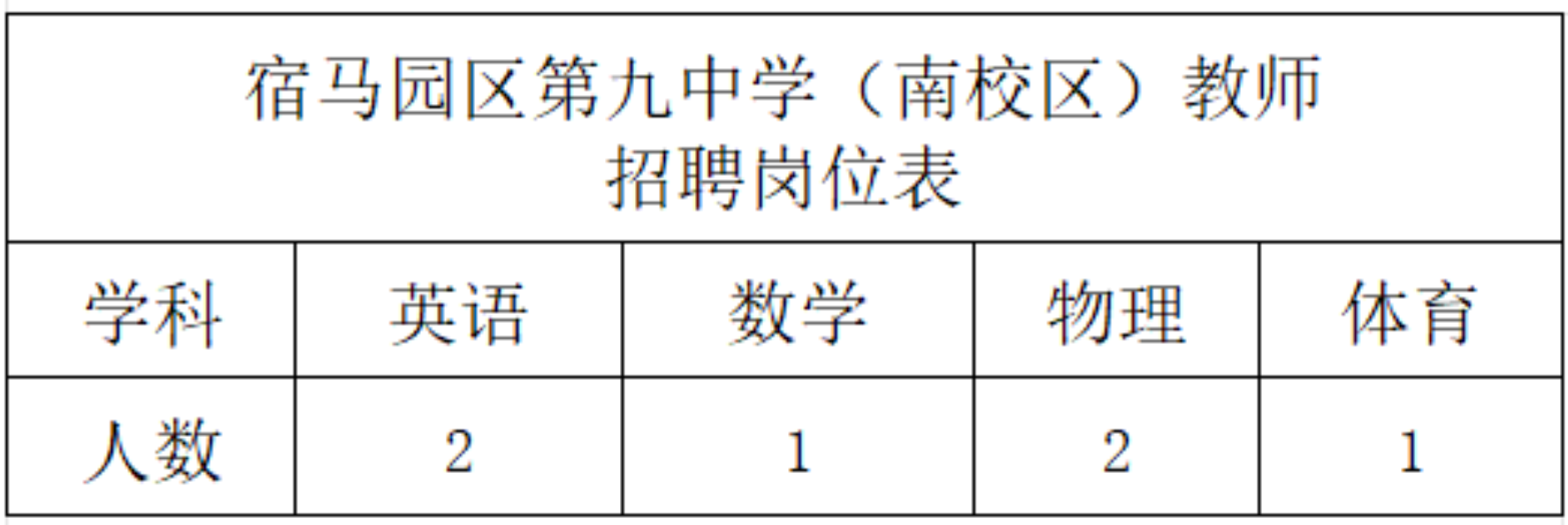宿州九中(宿马南校区):英语2名,数学1名,物理2名,体育1名,总计6人。