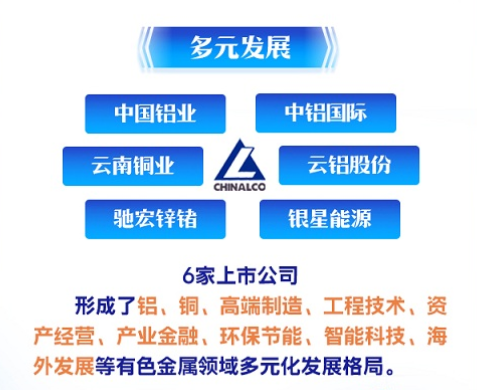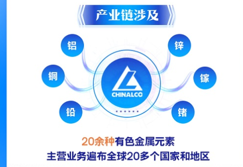 2008年以来连续跻身世界500强行列,是英国力拓集团最大单一股东。主营的氧化铝、电解铝、精细氧化铝、高纯铝、铝用阳极产能全球领先,铜综合实力位列国内第一梯队,铅、锌综合实力国内领先,锗、镓金属产量国内第一。