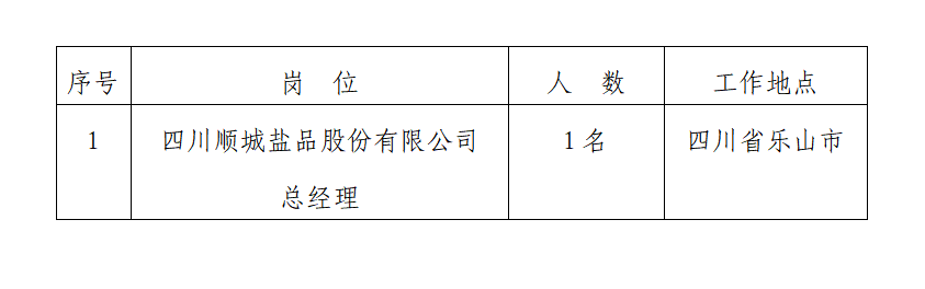 四川省盐业集团有限责任公司公开选聘所属子公司总经理公告