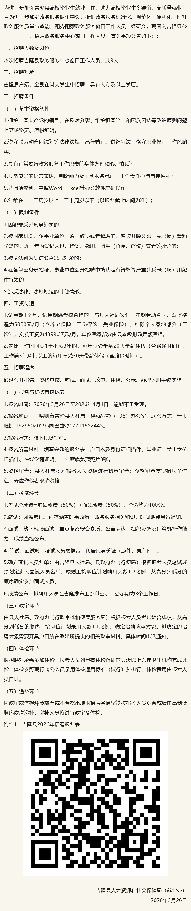 吉隆县关于招聘政务服务中心窗口工作人员的公告