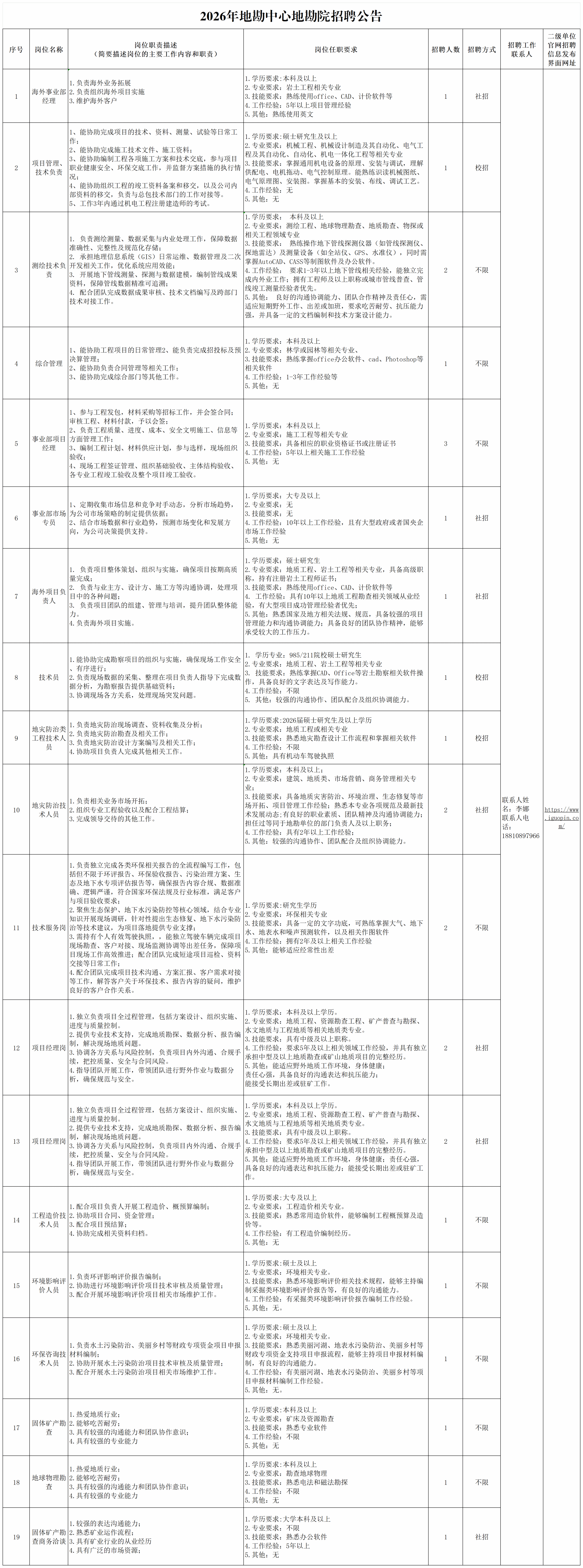 地勘中心(中国非矿)成员单位2026年招聘公告(二)