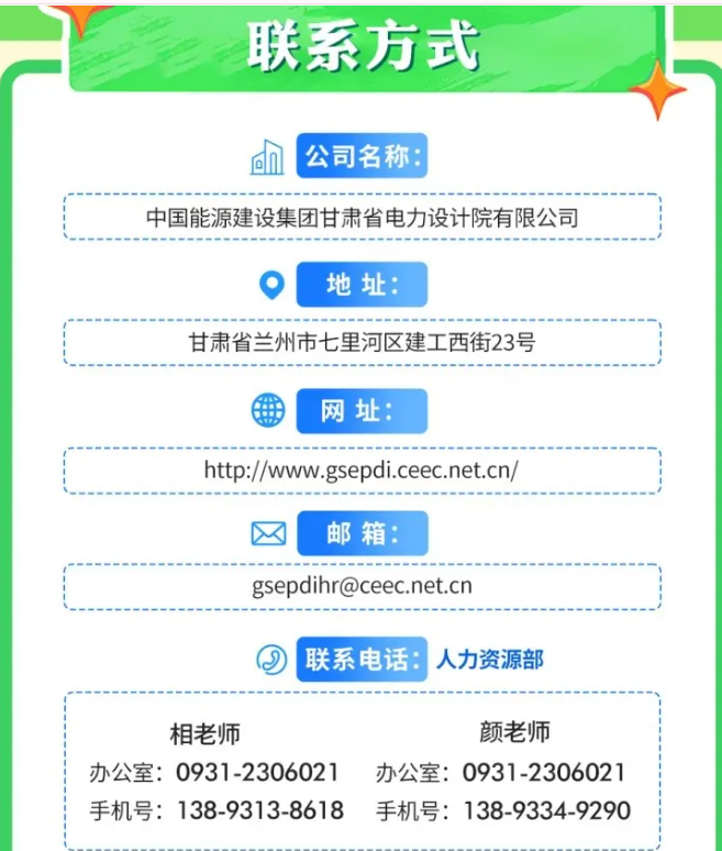 中国能源建设集团甘肃省电力设计院有限公司(简称“甘肃院”)位于兰州,始建于1958年,隶属世界500强企业中国能源建设集团股份有限公司,直属ENR全球工程设计企业150强中第2位的中国电力工程顾问集团有限公司。